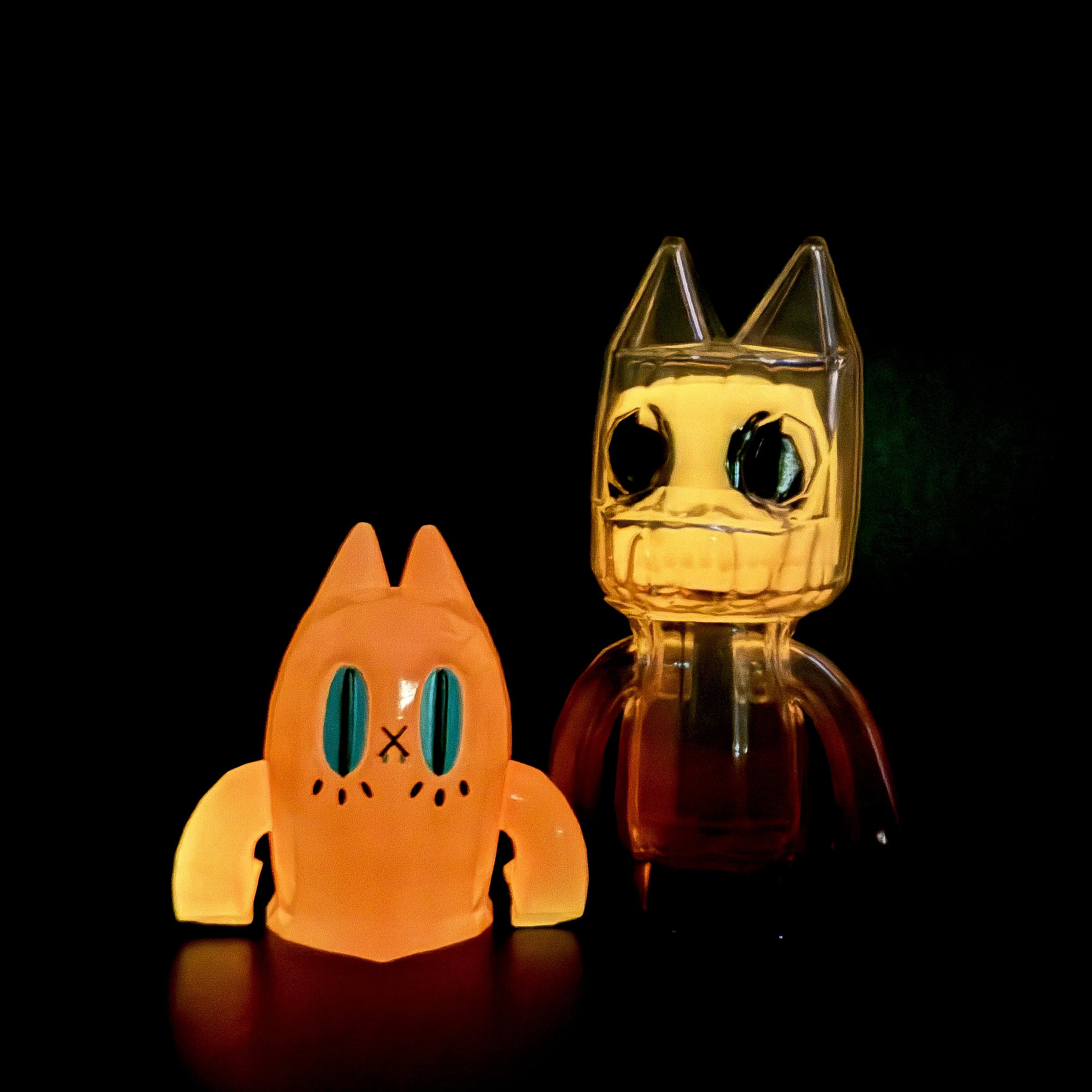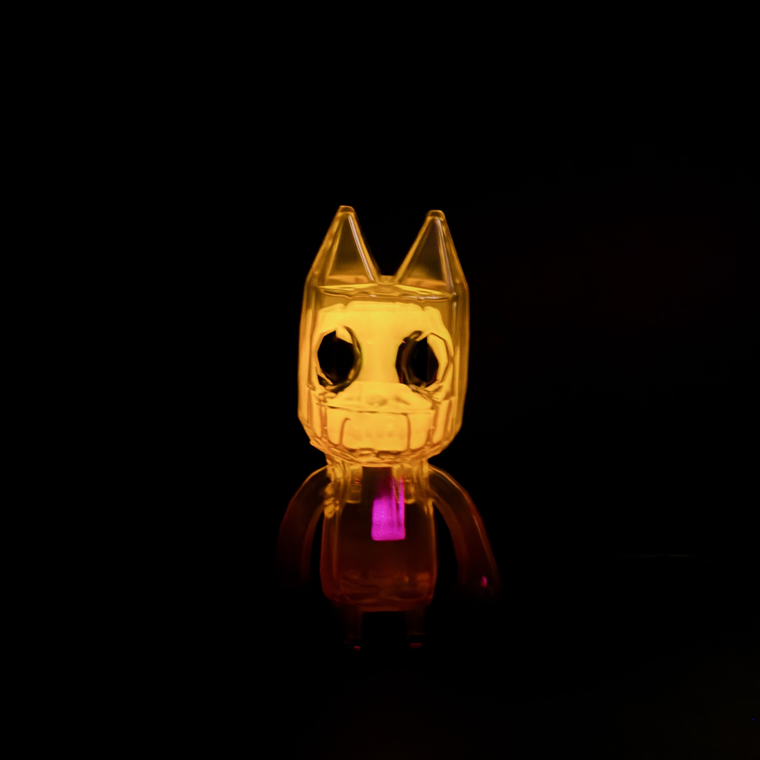 暗闇でオレンジ色に光ります。